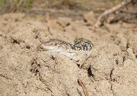 spots and transverse dark strips. Some specimens from eastern Kazakhstan are characterized by small white spots and interrupted, somewhat fused dark strips. Most southern populations show elongated white spots and irregular black spots scattered along the dorsum. Subspecies status of the steppe-runners from eastern Kazakhstan is still unclear and needs future clarification. Populations from south-eastern Kazakhstan are closer to E. arguta potanini. Southernmost populations belong to E. a. uzbekistanica. Poyarkov Jr., N.A. & Orlova, V.F. & Chirikova, M.A. (2014) - The mitochondrial phylogeography and intraspecific taxonomy of the Steppe Racerunner, Eremias arguta (Pallas) (Lacertidae: Sauria: Reptilia), reflects biogeographic patterns in Middle Asia. - Zootaxa, 3895 (2): 208-224.  ×Steppe racerunner, Eremias (Eremias) arguta, is one of the most widespread species of the Asian racerunners (genus Er-emias). Several subspecies were traditionally recognized however, morphological variability is so high that delimitation of these subspecies was always problematic. Here we present a phylogenetic hypothesis for this species based on cyto-chrome b sequences (55 samples from 35 populations, 900 bp partial sequences), infer it biogeography and the revise its subspecific structure. Six major phylogenetic lineages were revealed. The southernmost populations (E. a. uzbekistanica) from Uzbekistan form a clade together with the Issyk-Kul Lake subspecies (E. a. darevskii) based on both molecular and morphological evidence. Within more northern populations, there is a split between populations from Northern Caucasus, Europe and Western Kazakhstan (E. a. deserti) and Central and Eastern Kazakhstan populations (E. a. arguta). Transcau-casian (E. a. transcaucasica) steppe racerunners are grouped with Middle Asian populations. Finally, the easternmost samples, assigned to “E. a. potanini” are nested within the E. a. arguta clade. Populations from the Ili River Valley form a separate lineage sister to the clade joining all other E. arguta lineages and might represent a yet undescribed taxon. Spe-cies distribution in relation to historical biogeography of Middle Asia is discussed.